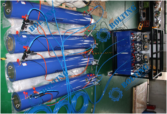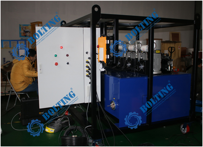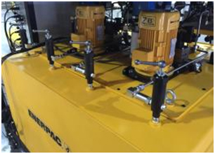 (1) 用于多點同步頂升操作; (2) 專門設計適用于惡劣工況條件下; (3) 圖示為模擬調試階段準備發(fā)貨情況; |